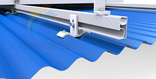 Landpower design various solar mounting solutions for Corrugated Roofs,we have hanger bolt solutions for wooden purlin, aluminum corrugated roof clamp for steel purlin, mini rails for simply installation,and L feet for simple installations, we also supply railing and rail-less mounting solutions for both landscape and portrait layout installation.